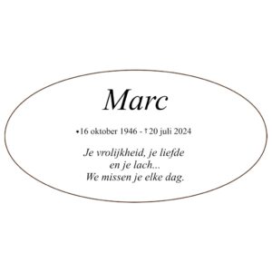 De urn kan worden gepersonaliseerd met een gravure, we hebben keuze uit verschillende mogelijkheden, graag verwijzen we je naar onze pagina “opties voor graveren” waar alle graveermogelijkheden worden uitgelegd.