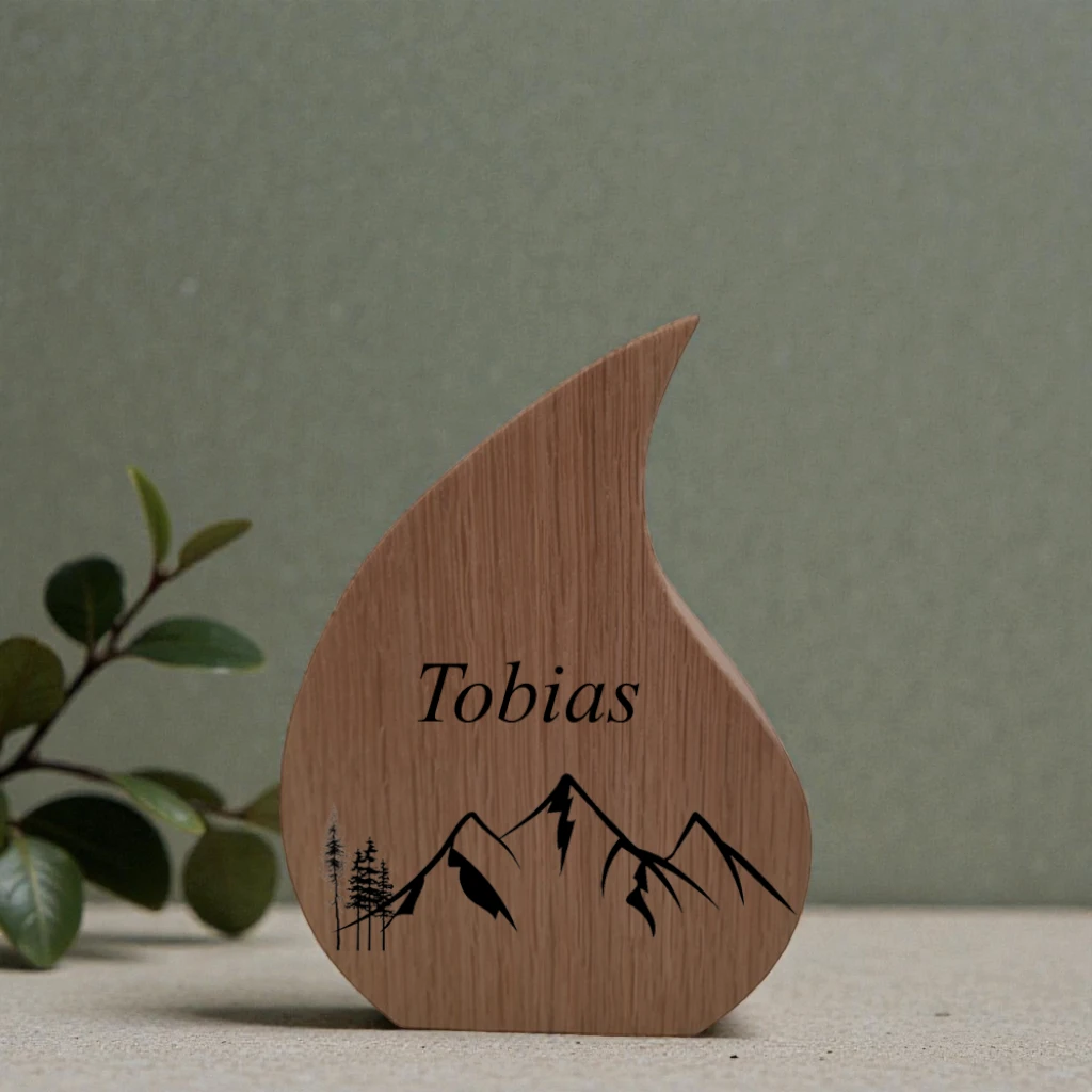 De mini urn Solacia – Eikenhout biedt een moderne en natuurlijke manier om een dierbare te herdenken. De houten mini urn is met zorg met de hand vervaardigd in ons eigen atelier en heeft een elegante druppelvorm, ook wel bekend als traandruppel. De vorm geeft de urn een tijdloze en rustige uitstraling, passend in uiteenlopende interieurs.