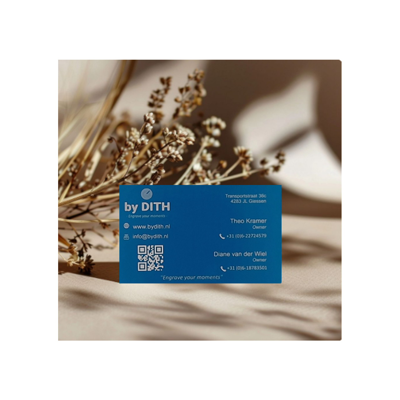 Deze kwalitatief hoogwaardige kaartjes worden gegraveerd met een door jou aangeleverd bestand, welke je kan meesturen met je bestelling.