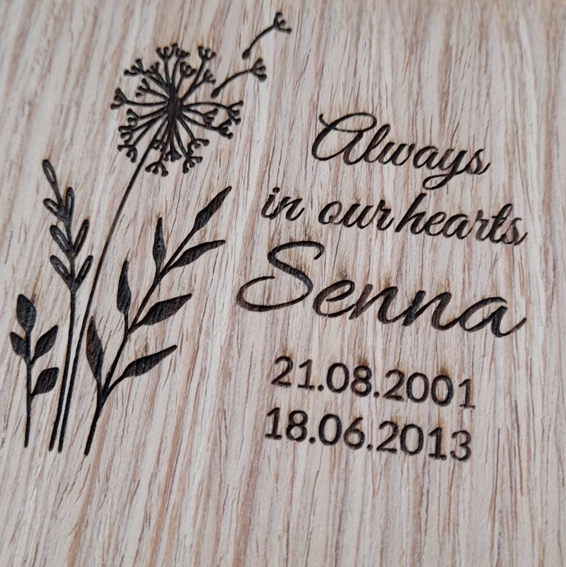 Vul alle gemaakte keuzes in bij het product dat aansluit bij de gekozen urn. ( keepsake, mini urn, urn) Let bij het invullen van de tekst goed op hoofdletters, leestekens, komma’s, punten etc. Wij nemen de tekst letterlijk over. Als alle velden zijn ingevuld kan de gravering worden toegevoegd aan de winkelmand.